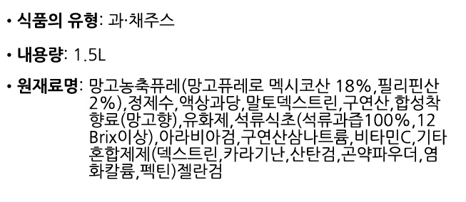 ¿øÀç·á¸í ¹× ÇÔ·® ¸Á°í³óÃàÇ»·¹(¸Á°íÇ»·¹·Î ¸ß½ÃÄÚ»ê 18%, Çʸ®ÇÉ»ê2%), Á¤Á¦¼ö, ¾×»ó°ú´ç, ¸»Å䵦½ºÆ®¸°,