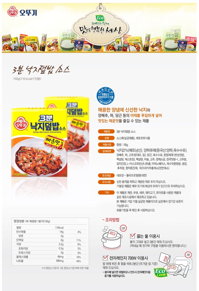 ¿À¶Ñ±â_3ºÐ³«Áöµ¤¹ä¼Ò½º150g * 6°³ÀÔ